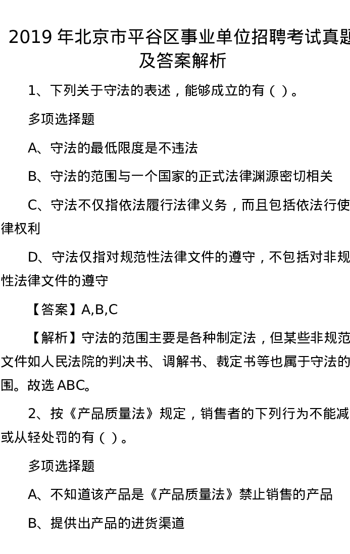2019年北京市平谷区事业单位招聘考试真题及答案解析