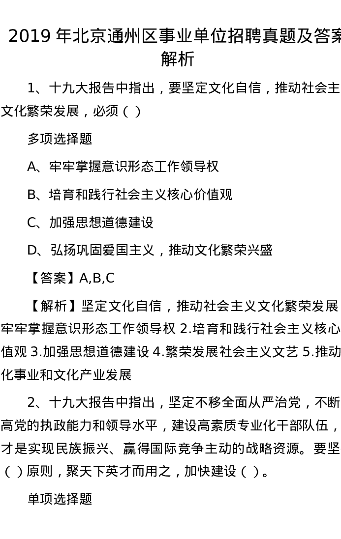 2019年北京通州区事业单位招聘真题及答案解析
