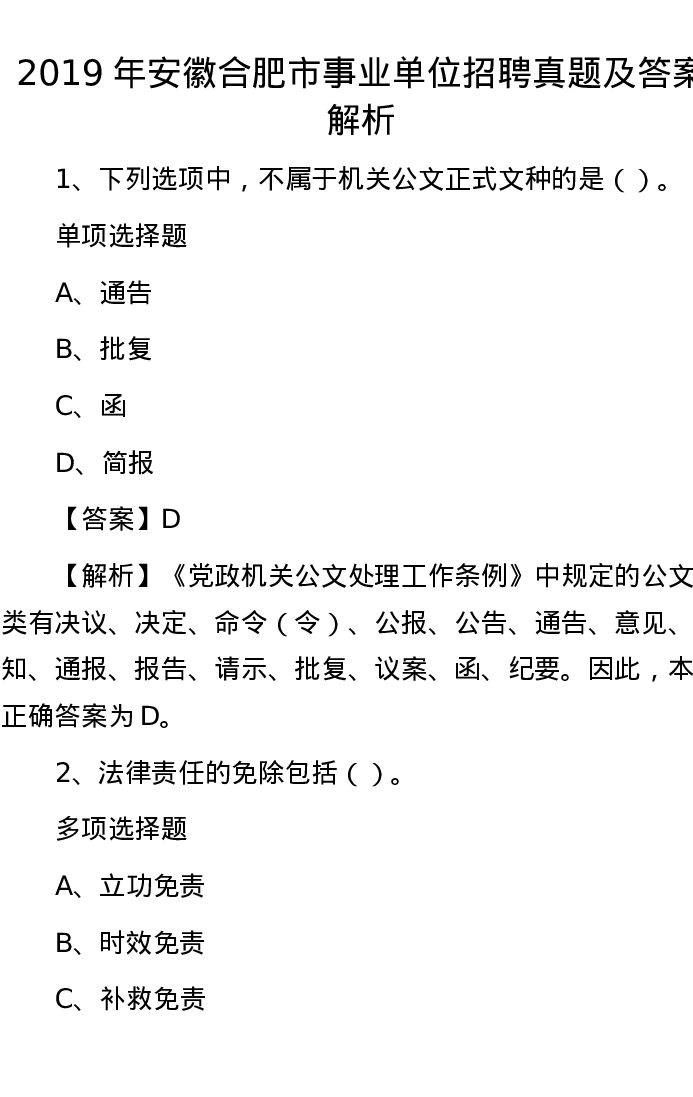 2019年安徽合肥市事业单位招聘真题及答案解析