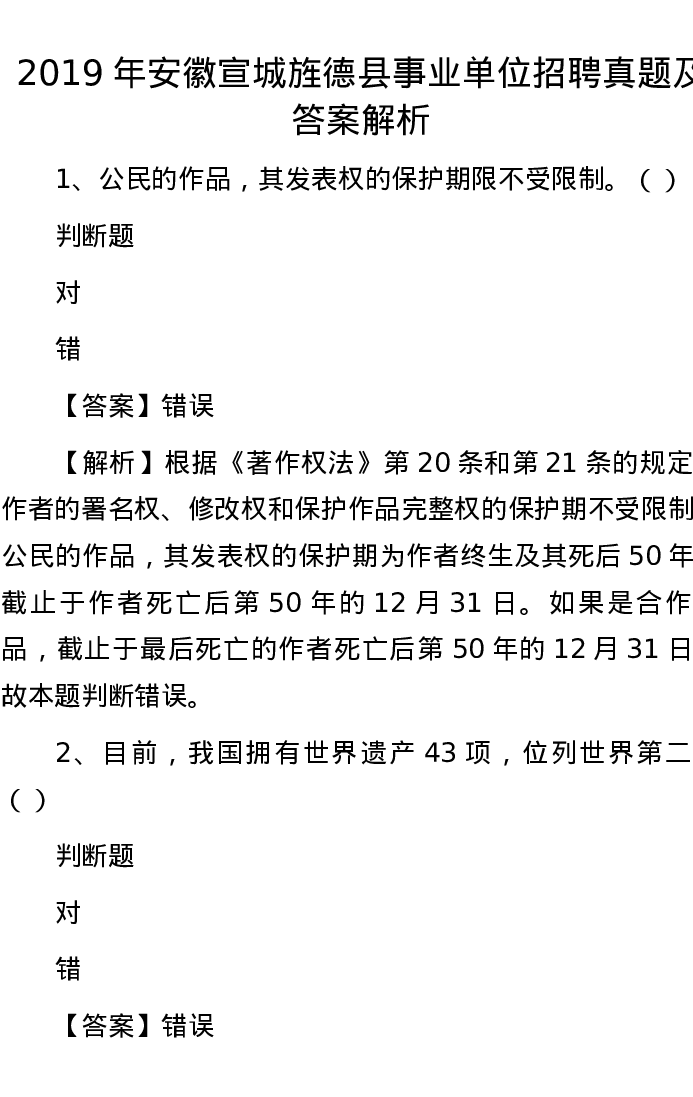 2019年安徽宣城旌德县事业单位招聘真题及答案解析