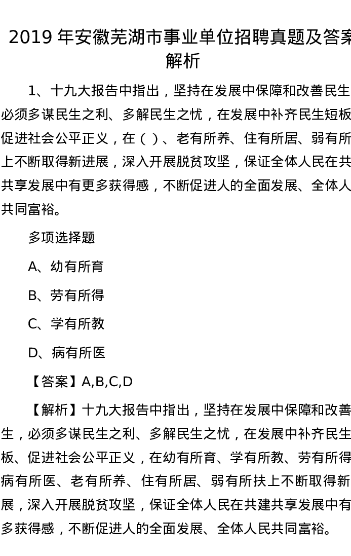 2019年安徽芜湖市事业单位招聘真题及答案解析