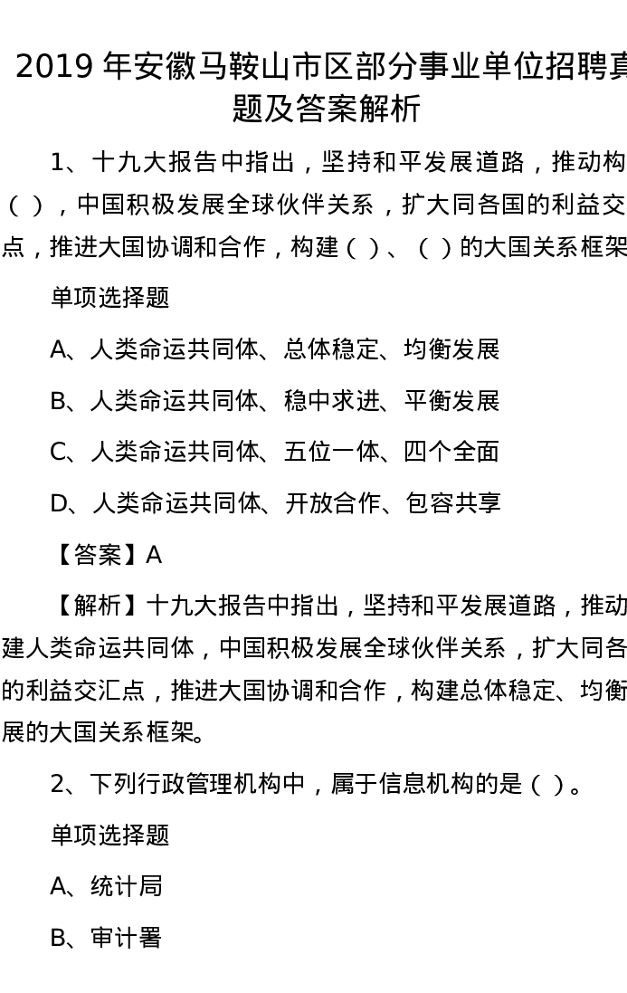 2019年安徽马鞍山市区部分事业单位招聘真题及答案解析