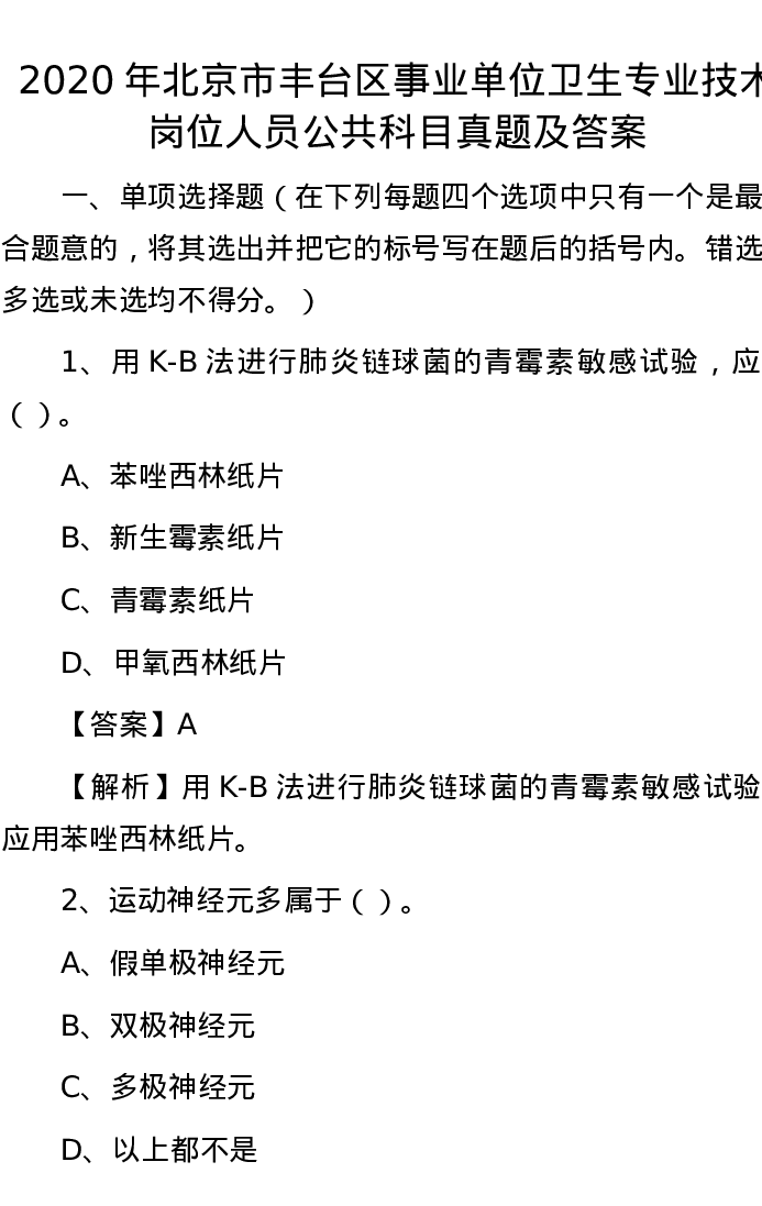 2020年北京市丰台区事业单位卫生专业技术岗位人员公共科目真题及答案