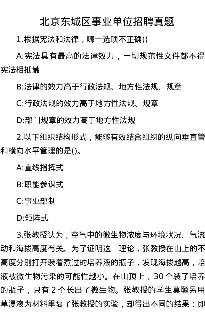 北京东城区事业单位招聘真题