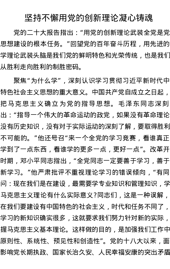 坚持不懈用党的创新理论凝心铸魂