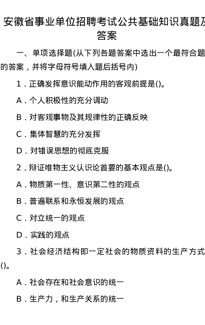 安徽省事业单位招聘考试公共基础知识真题及答案