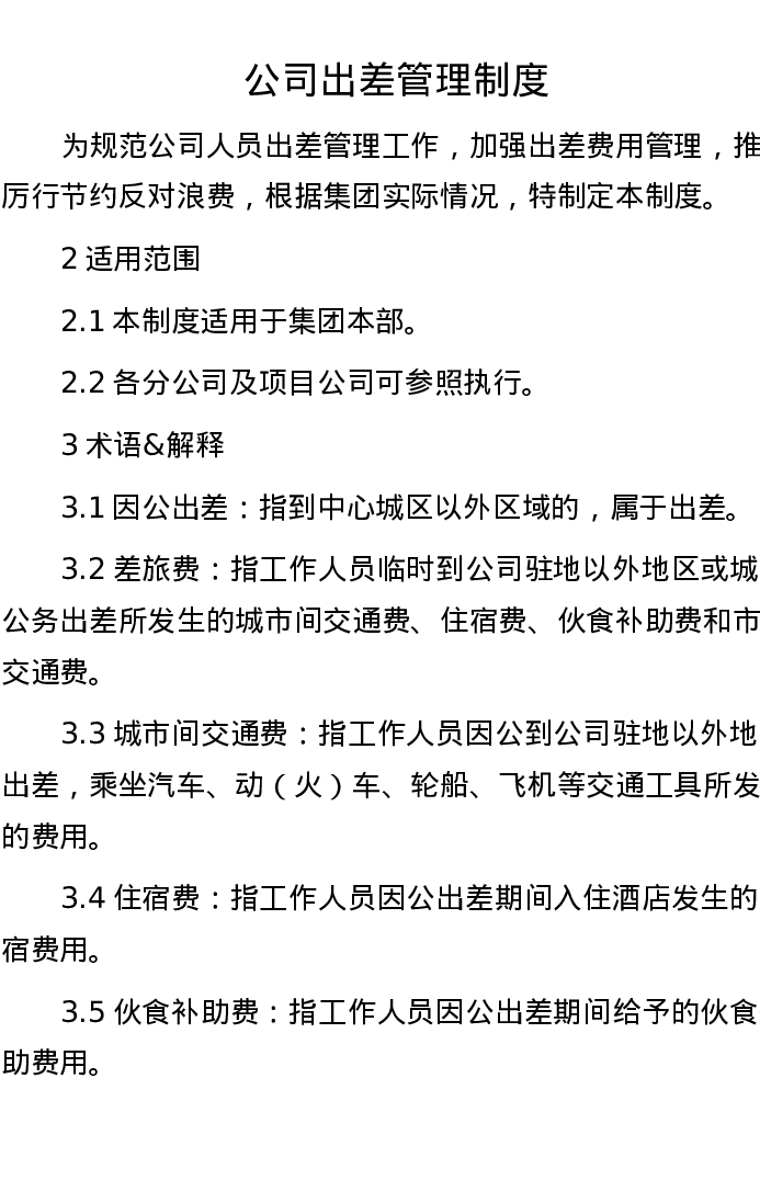 公司出差管理制度