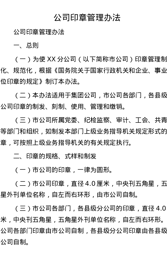 公司印章管理 办法