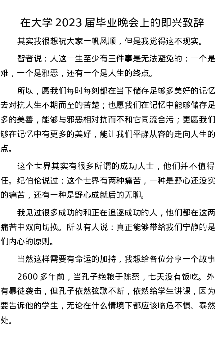 在大学2023届毕业晚会上的即兴致辞