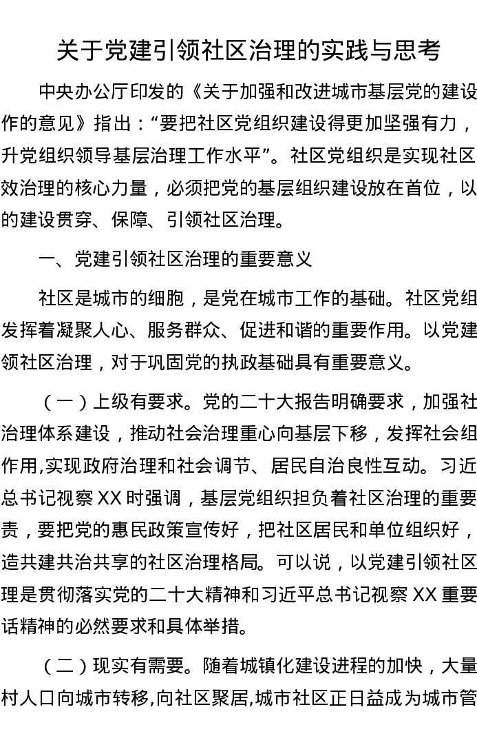 关于党建引领社区治理的实践与思考