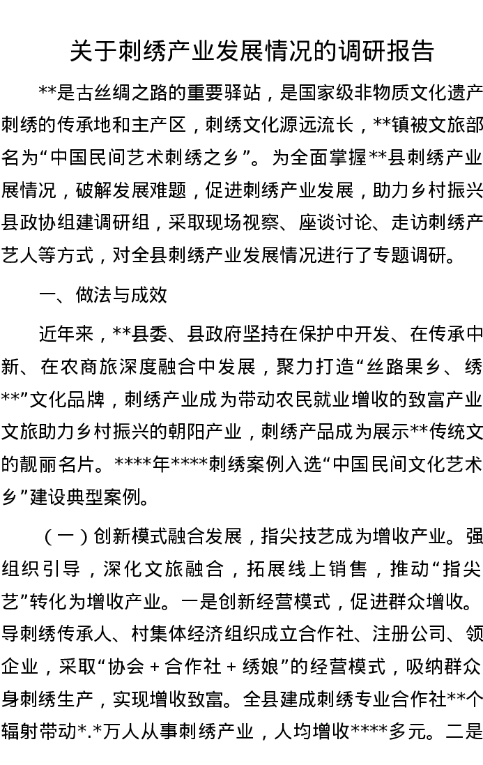 关于刺绣产业发展情况的调研报告