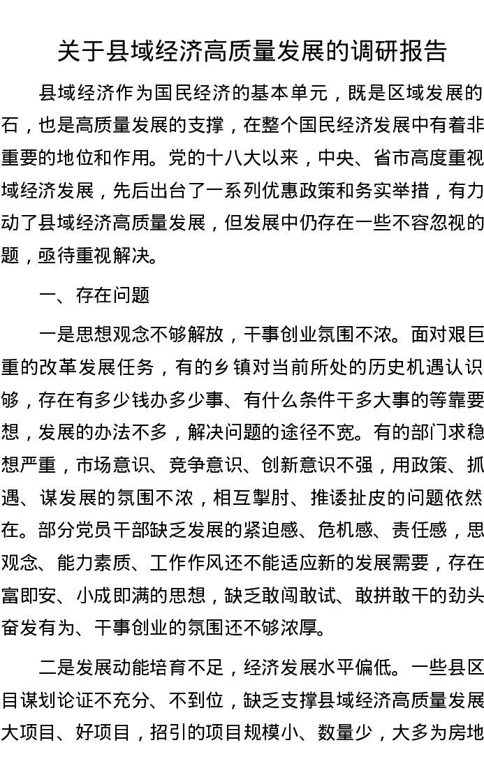关于县域经济高质量发展的调研报告
