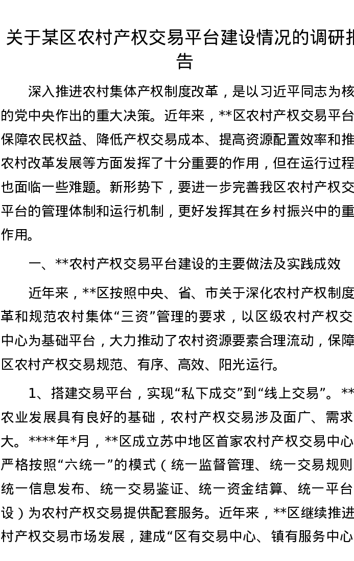 关于某区农村产权交易平台建设情况的调研报告