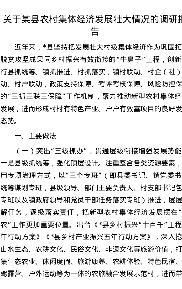 关于某县农村集体经济发展壮大情况的调研报告