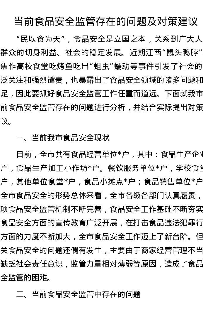当前食品安全监管存在的问题及对策建议
