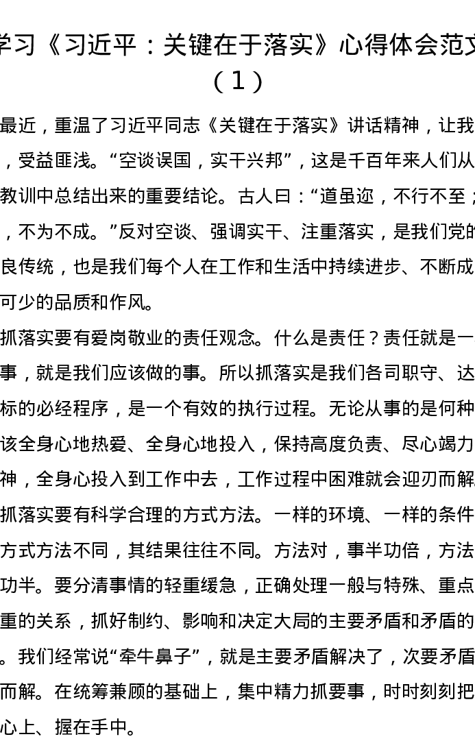 汇编:学习《关键在于落实》心得体会4篇(研讨发言)