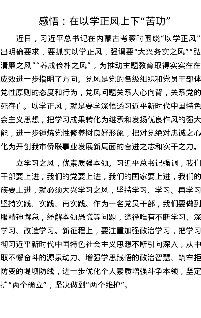 感悟:在以学正风上下“苦功”