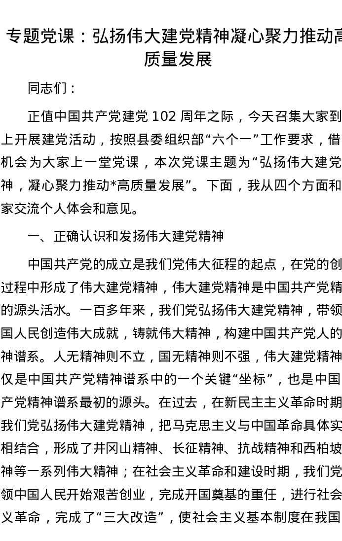 专题党课:弘扬伟大建党精神凝心聚力推动高质量发展