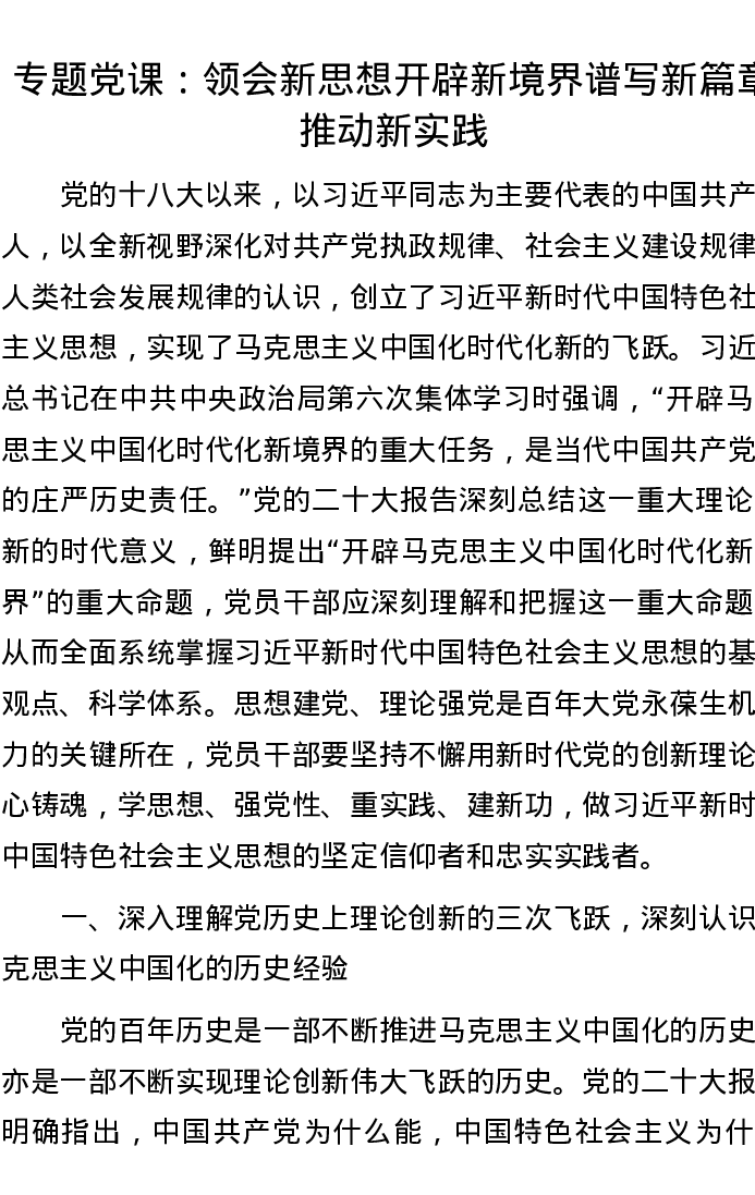 专题党课:领会新思想 开辟新境界 谱写新篇章 推动新实践