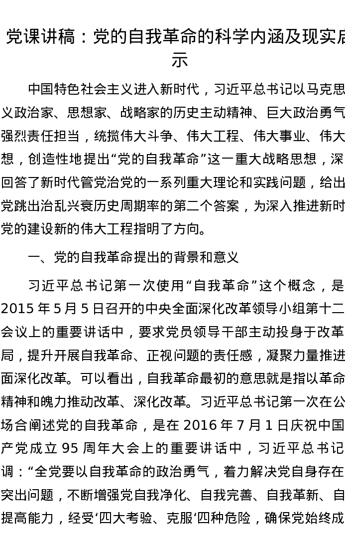 党课讲稿:党的自我革命的科学内涵及现实启示