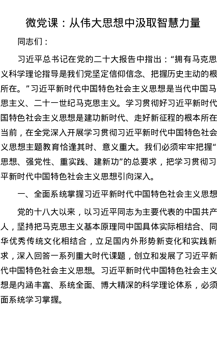 微党课:从伟大思想中汲取智慧力量