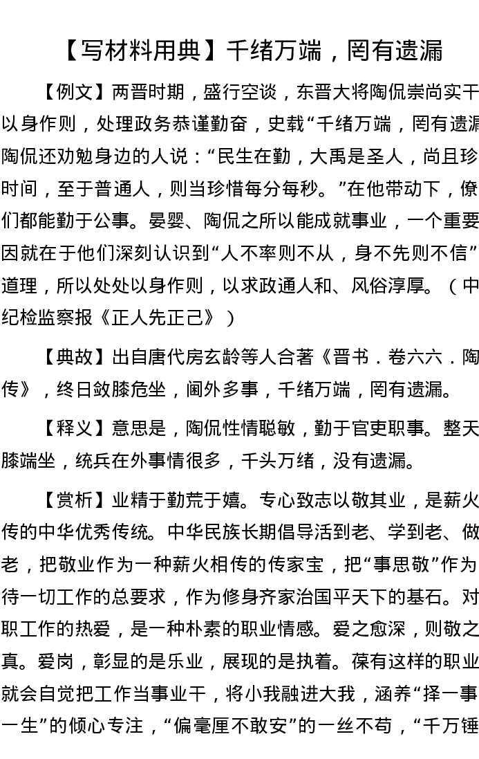 【写材料用典】千绪万端,罔有遗漏