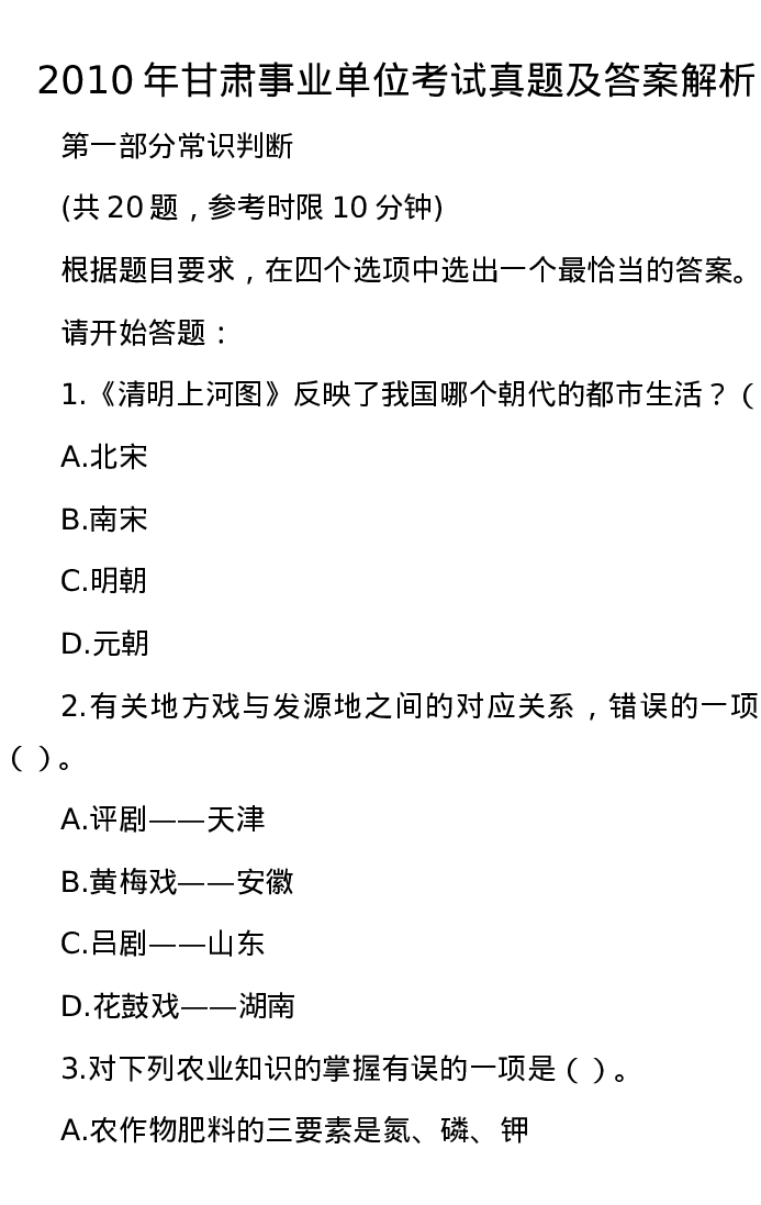 2010年甘肃事业单位考试真题及答案解析