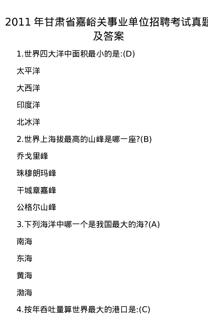2011年甘肃省嘉峪关事业单位招聘考试真题及答案