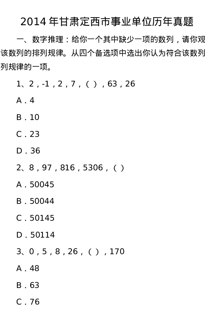2014年甘肃定西市事业单位历年真题