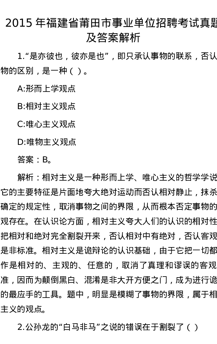 2015年福建省莆田市事业单位招聘考试真题及答案解析