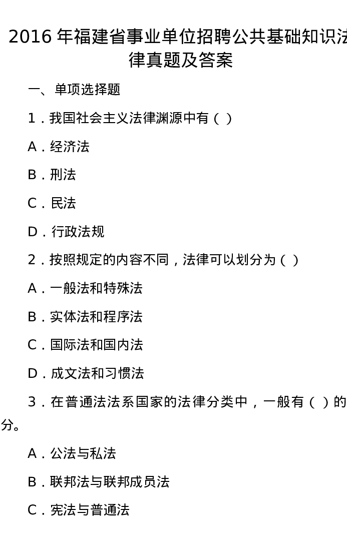 2016年福建省事业单位招聘公共基础知识法律真题及答案