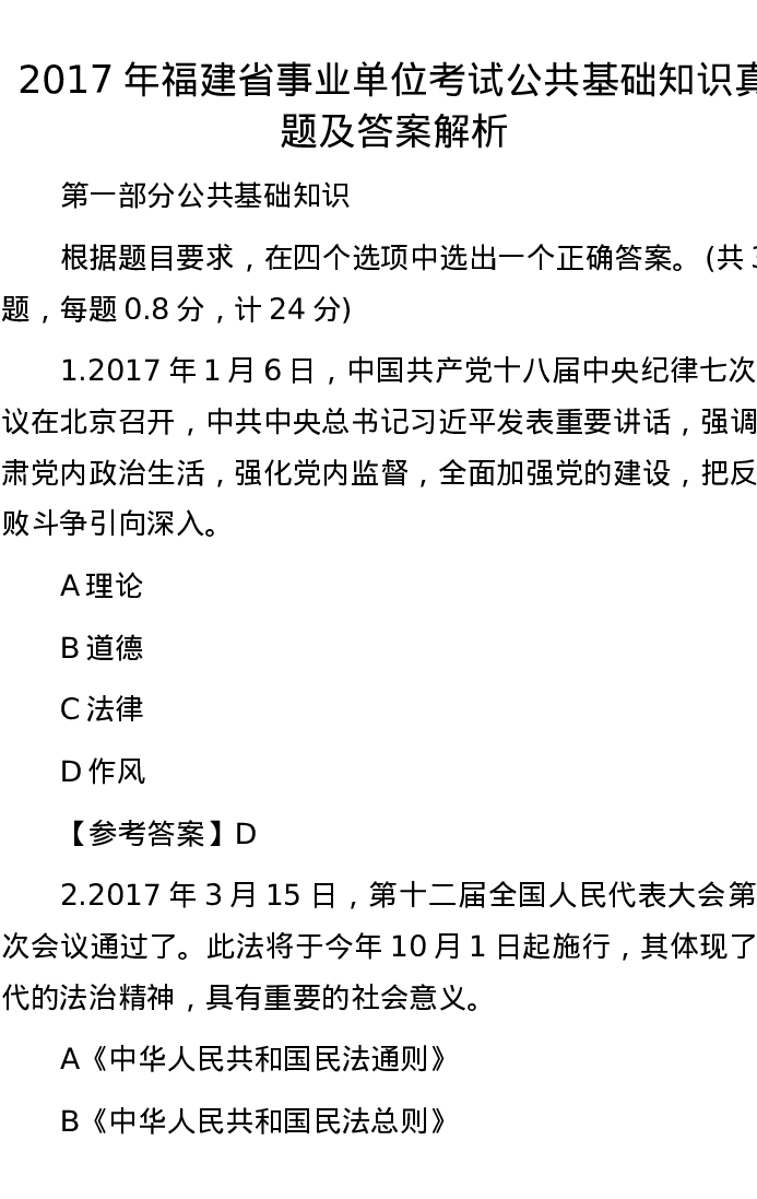 2017年福建省事业单位考试公共基础知识真题及答案解析