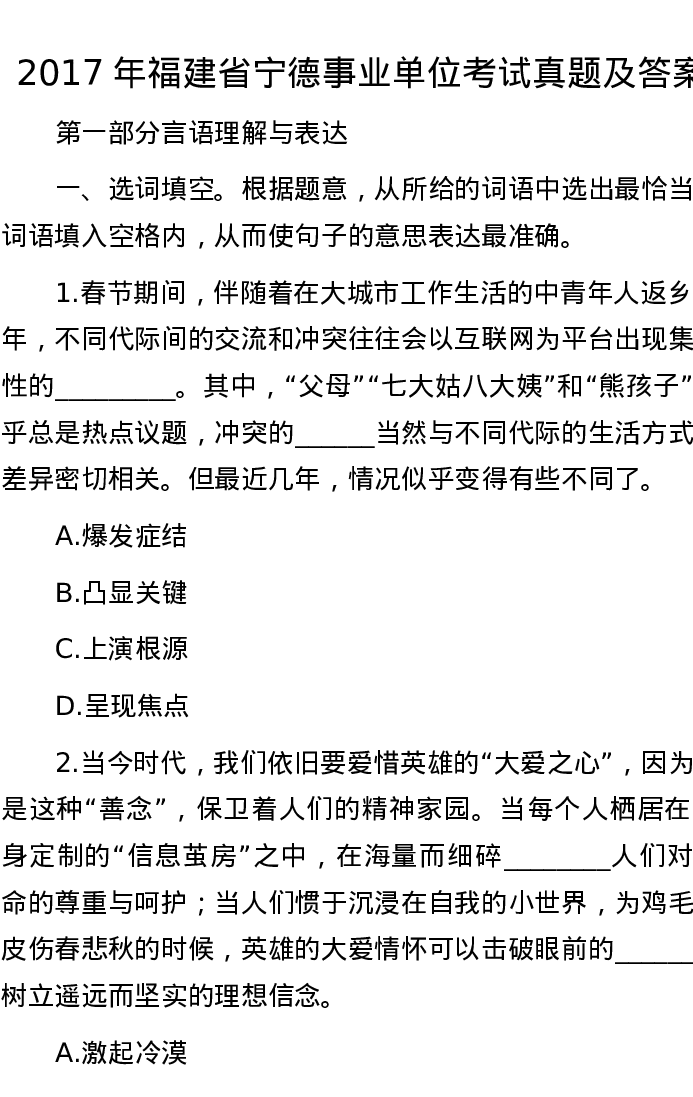 2017年福建省宁德事业单位考试真题及答案