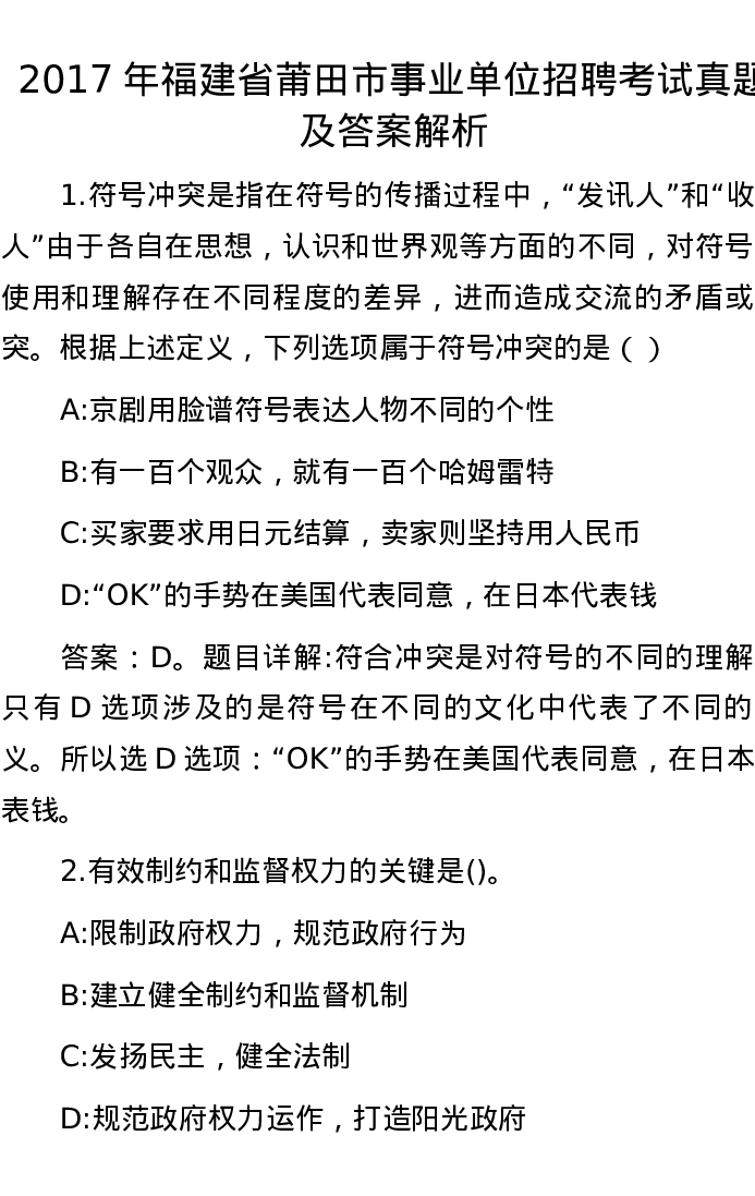 2017年福建省莆田市事业单位招聘考试真题及答案解析