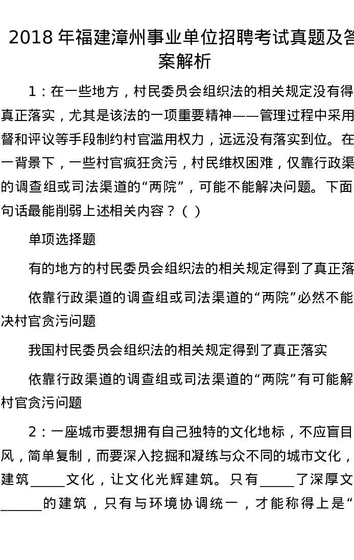 2018年福建漳州事业单位招聘考试真题及答案解析