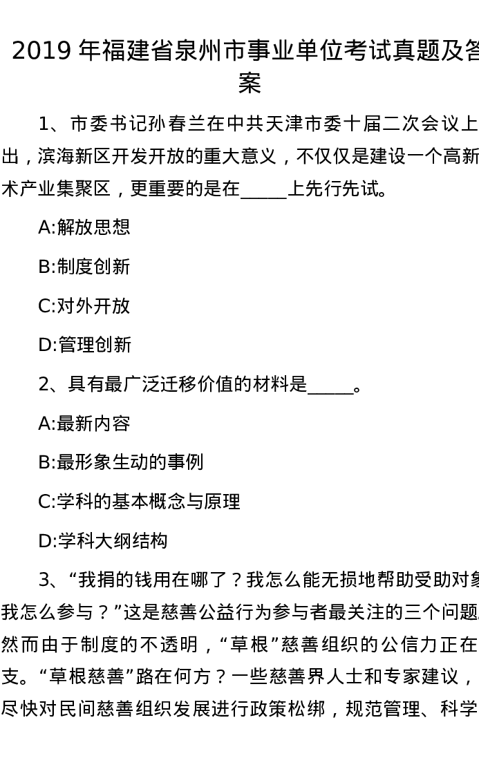 2019年福建省泉州市事业单位考试真题及答案