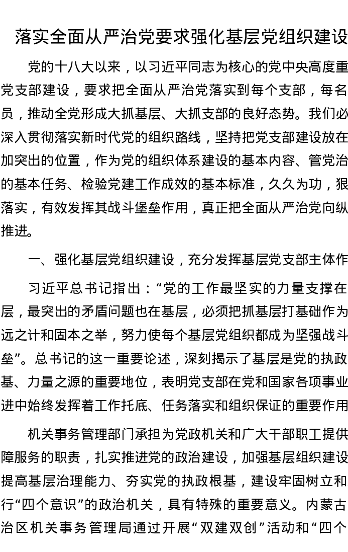 落实全面从严治党要求 强化基层党组织建设