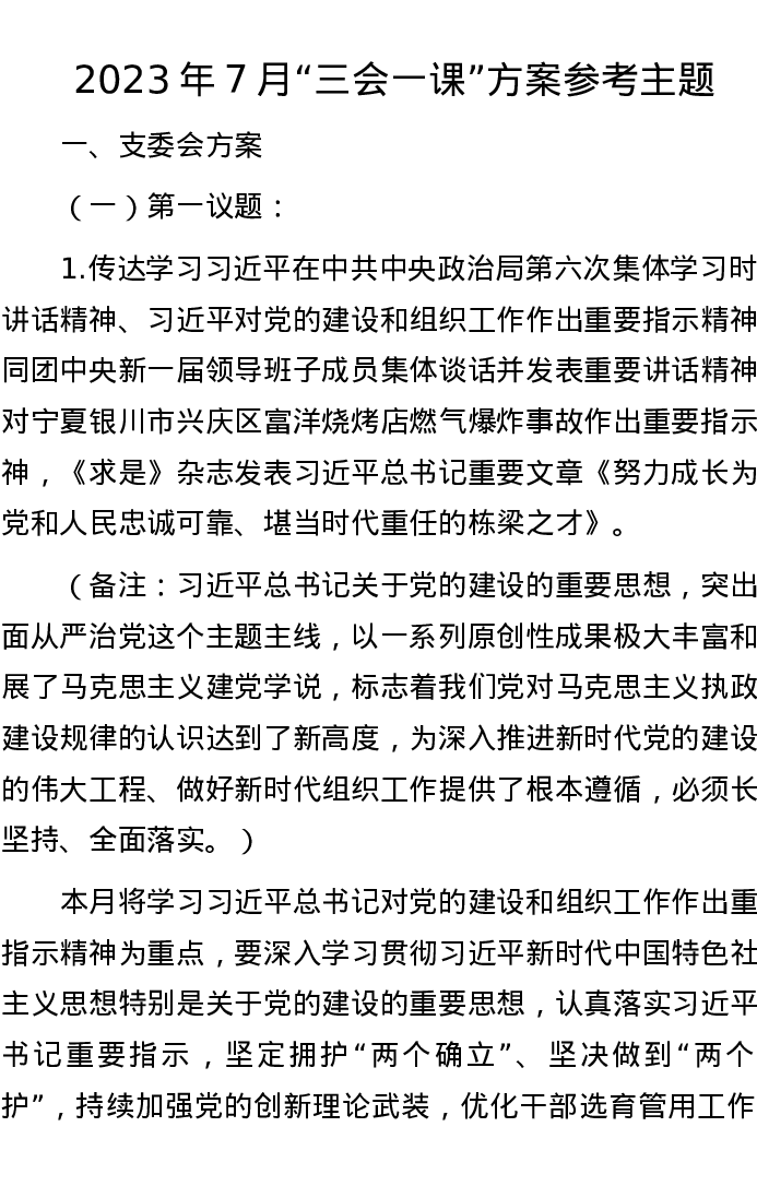 2023年7月“三会一课”方案参考主题