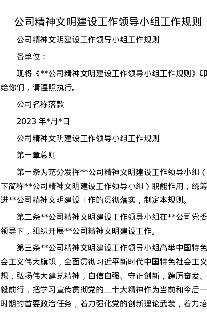 公司精神文明建设工作领导小组工作规则