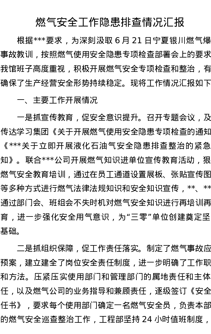燃气安全工作隐患排查情况汇报