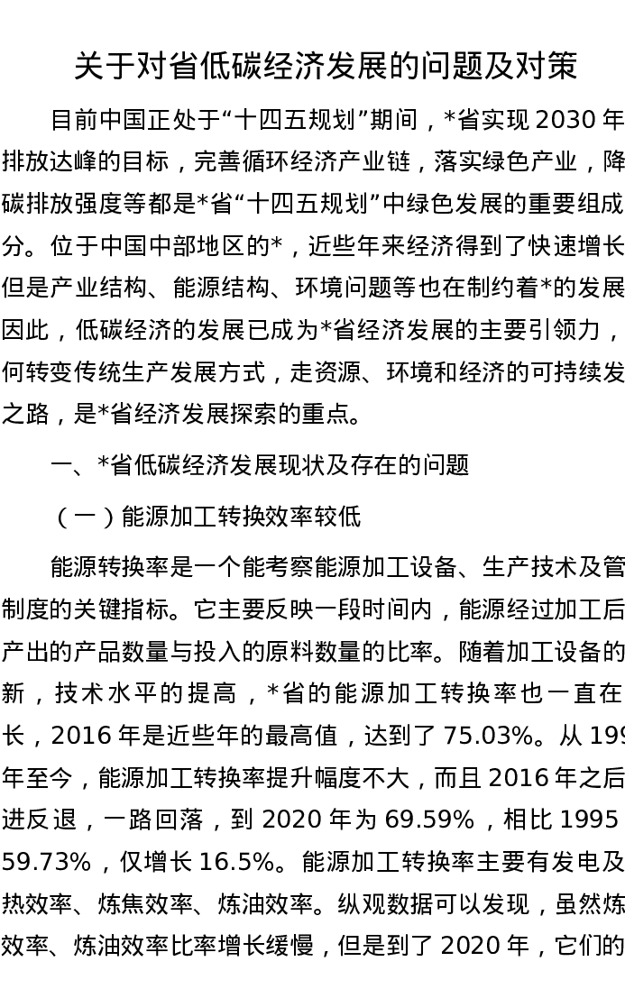 关于对省低碳经济发展的问题及对策