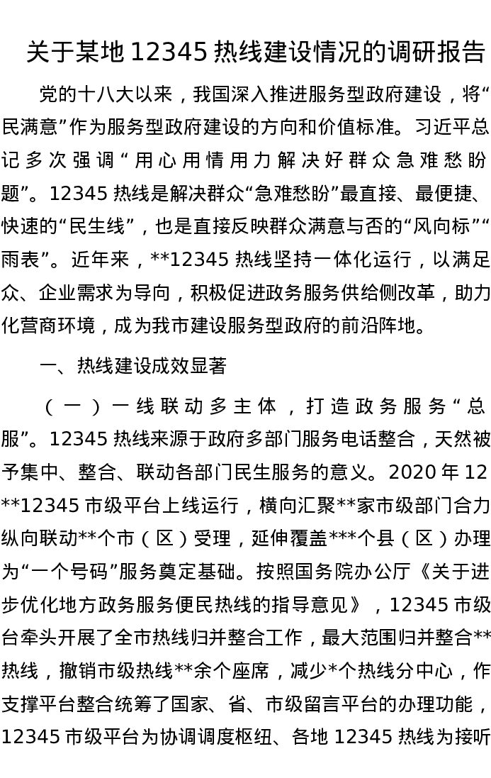 关于某地12345热线建设情况的调研报告