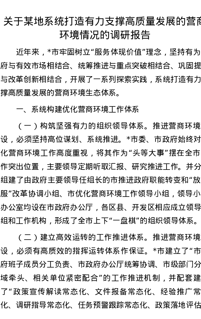 关于某地系统打造有力支撑高质量发展的营商环境情况的调研报告
