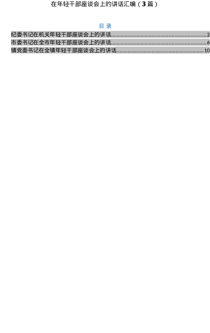 汇编:在年轻干部座谈会上的讲话3篇