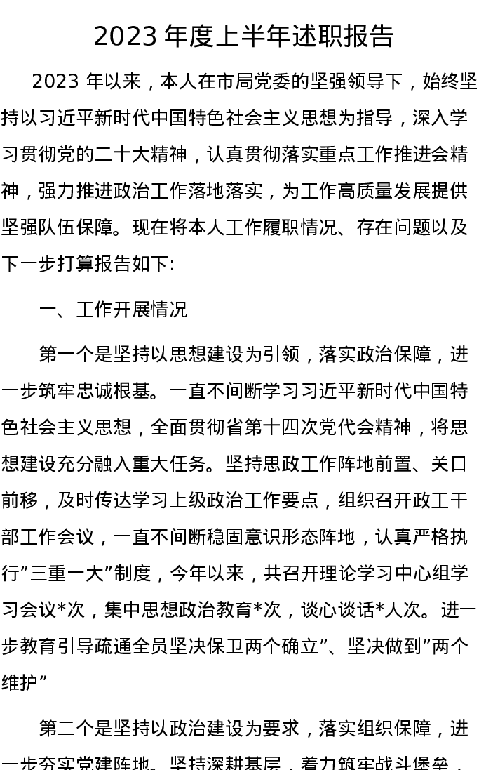 2023年度上半年述职报告