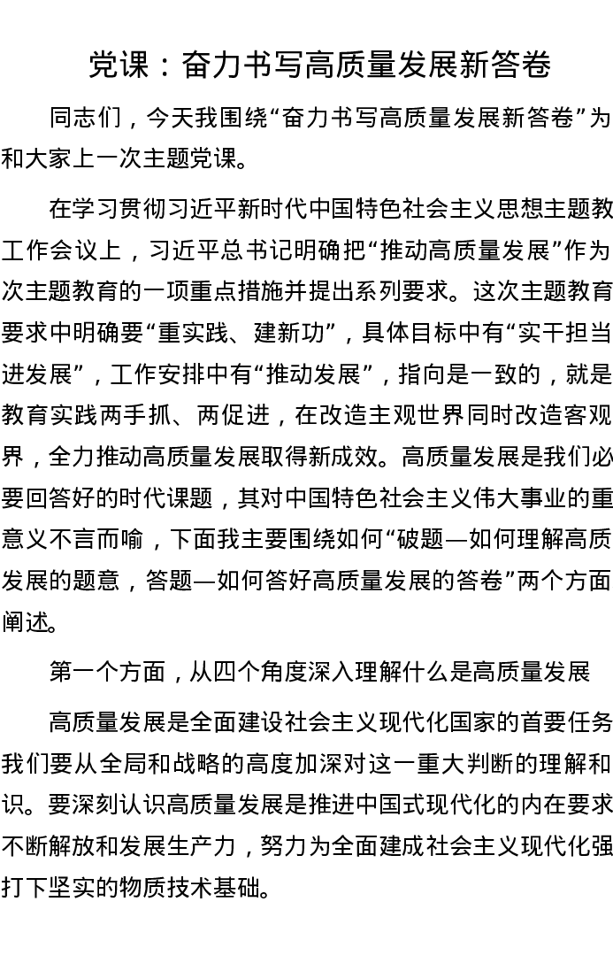 党课:奋力书写高质量发展新答卷