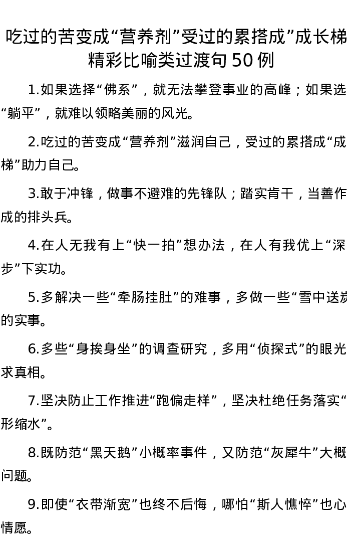 吃过的苦变成“营养剂” 受过的累搭成”成长梯”:精彩比喻类过渡句50例
