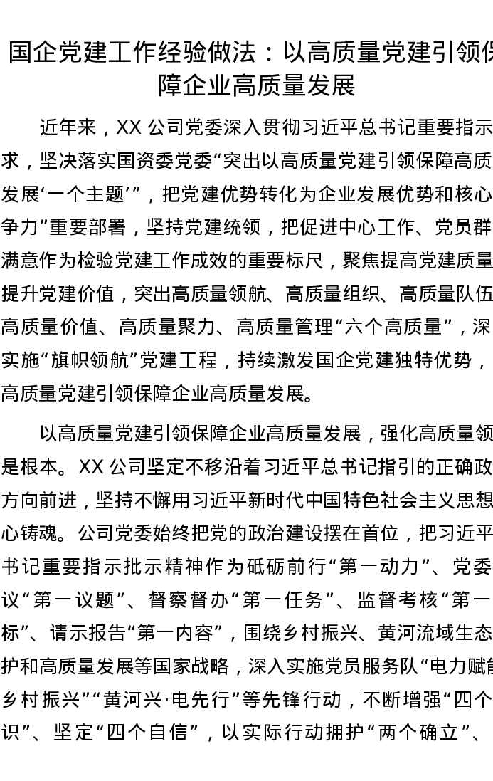 国企党建工作经验做法:以高质量党建引领保障企业高质量发展
