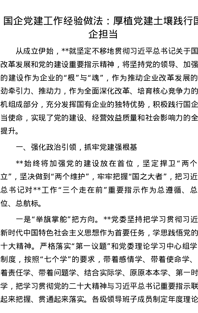 国企党建工作经验做法:厚植党建土壤 践行国企担当