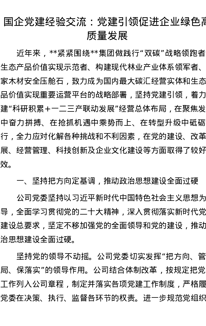 国企党建经验交流:党建引领促进企业绿色高质量发展